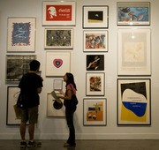 Ylaine L. Gerardin ’10 discusses the AA Bronson artwork with a fellow student. Gerardin entered the AA Bronson piece as her first choice in the List Visual Arts Center’s lottery.
