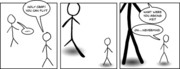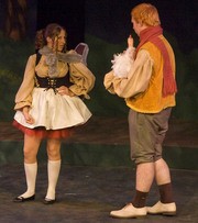 Little Red Riding Hood (Karen A. Hart ’11) encounters Jack (Timothy Wilfong) in the woods.