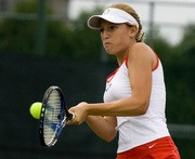 Alexandria C. Hall ’12 delivers a crushing backhand in Saturday’s match against Suffolk University. Despite Hall’s 7-6, 6-4 loss to Lauren Cameron, the Engineers steamrolled the Rams 8-1 in their fifth consecutive win.