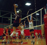 Katrina M. Ellison ’10 leaps for the kill during the game against Brandeis University last Saturday. The Engineers lost 3-2.