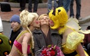 On Feb. 7, Charlize Theron received Hasty Pudding Theatricals’ 2008 “Woman of the Year” Award at Harvard. She was accompanied in the parade by Hasty Pudding Theatricals’ Vice President David Andersson, President Evan Eachus, and other members dressed in drag.