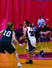 Guard Kimberly E. Soo Hoo ’08 takes the ball down the court against Jill Walsh of Babson College on Senior Night last Wednesday, the final home game of her career. The Engineers jumped out to a large lead early and held on in the final few minutes to win 52-49.