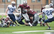 DeRon M. Brown ’10 rushes out from the defensive line in the Engineer’s game against Massachusetts Maritime on Saturday, Sept. 13 at the Henry Steinbrenner Stadium. MIT overpowered Mass. Maritime 42-14 and led to their first 2-0 season start since 2004. Brown rushed for a career-best 251 yards and two touchdowns during the game.