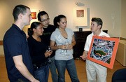 At the Cheryl Vossmer Photo Exhibition hosted by the Sidney-Pacific Graduate Community, MIT Police Sergeant Cheryl N. Vossmer (right) showcased her outstanding work to (from left) David J. Dolev, MIT Police Officer Jennifer Ortiz, Justin Zheng G, and MIT Police Officer Loren Montgomery.