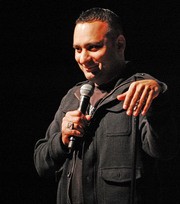 Comedian Russell Peters gestures during his headlining act of MIT’s Fall Festival on Friday evening in the Kresge Auditorium. Peters’ show, which is known for his jokes about racial stereotypes, was very popular, selling out quickly and attracting an audience from both MIT and the outside community.
