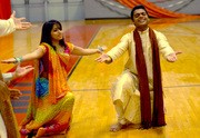 Komal Patel (left, a junior at Simmons College) and Sanjay Divakaran ’08 dance during the Bhangra portion of MIT South Asian Student’s Annual Milan Garba-Raas Dance Festival on Saturday, Oct. 11.