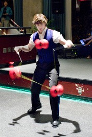 Jacob S. Sharpe ’11 juggles three diabolos, also known as Chinese yo-yos, during a performance at the Association of Taiwanese Students’ Nightmarket event on Saturday night.
