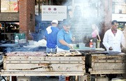 An outdoor barbecue was seen at Oktoberfest in Harvard Square on Sunday afternoon.