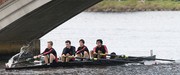 Oarsmen (Left to right) Jameson W. Nash ’11, Johannes A. Schneider ’10, Adam Bockelie ’11, and Timothy J. Villabona ’09, led by coxswain Diana T. Wu ’11, power MIT’s Men’s Varsity Lightweight Four past the Weeks footbridge in Sunday’s Head of the Charles regatta. The crew finished 10th out of a field of 14 teams with a time of 18:03.215. The Head of the Charles is the world’s largest two-day regatta, with more than 8,000 athletes from around the world racing the 3 mile course.
