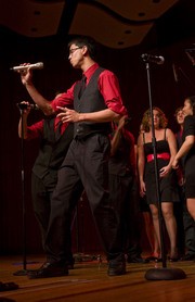 Jared C. Sadoian ’10 performs one of the MIT Chorallaries classic songs “Africa” by Toto during the Songfest held last Saturday during Family Weekend.