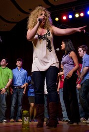 Shamarah J. Hernandez ’12 from the MIT Muses shows off her skills singing “Shut Up and Drive” by Rihanna on Oct. 18 at Songfest during Family Weekend.