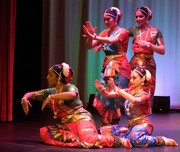 Members of MIT Natya, the student organization known for Bharatha Natyam dancers, represented the science of DNA through dance in their performance in Little Kresge Auditorium on Monday.
