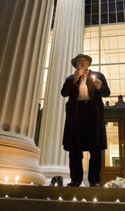Institute Chaplain Robert M. Randolph leads a prayer and a moment of silence for victims of the terror attacks in Mumbai, India during a candlelight vigil held in Killian Court on Tuesday evening.