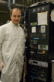 Electrical Engineering and Computer Science Associate Professor Vladimir Bulovic stands in his lab next to an integrated materials growth system, used in the development of nanostructure optical and electronic devices. He is one of four professors named MacVicar Fellows this year for excellence in teaching.