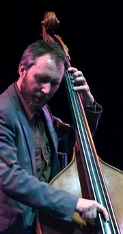 Reid Anderson plays the bass during “Variation d’Apollon” at the Berklee Performance Center on April 3.
