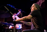 Drummer David King evokes an electronica groove on the drums at Iron Horse Music Hall in Northampton, Mass.