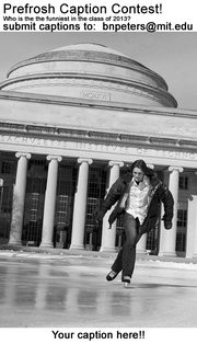 Emily Zhang Wayland, Mass. Architecture What aspect of CPW are you most excited about? Seeing dorms, meeting people, and partying! Are there any student activities that you’d like to do? I’m thinking about being a coxswain for [men’s crew], or maybe I’ll just watch. What initially attracted you to MIT? It’s really famous, and I like the creative aspects of MIT, that there is a quirkiness that no other school really has. I also liked the MIT admissions propaganda that they sent out.