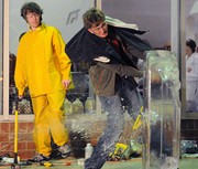 Prospective student Isaac Gutenkunst smashes ice during the CPW festival on April 16. This event was sponsored by East Campus Second West residents, who were also preparing liquid nitrogen ice cream.