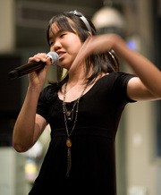 Phitchaya Phothilimthana ’12 sings “Can’t Help Falling in Love,” the final song at the Muses’ spring concert on May 3 in 10-250.