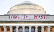 Hackers put a large banner reading “LONG LIVE ROAST” across the facade of MIT’s Building 10 on the morning of May 1, the first day of the multi-day Steer Roast party at Senior House. Look at page 10 for more pictures of Steer Roast.