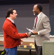 East Campus House Manager Joseph F. Graham Jr. is awarded the James N. Murphy Award for his contributions to community life at the Institute during the 2009 Awards Convocation, held in 10-250 on Tuesday, May 5.