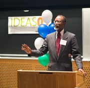 Chancellor Philip L. Clay PhD ’75 presents a $2,500 prize to Aquaport at the awards ceremony for the 2009 MIT IDEAS Competition on Monday evening in 32-123. The Aquaport team developed an affordable water transportation device for women in rural Ghana.