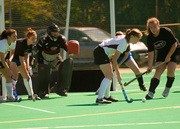 Current members of the Varsity Field Hockey team (white) win against their predecessors 5-0 at the Alumnae Game held on the Barry Astroturf Field on Saturday.