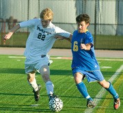 Thomas W. Fronk ’13 fights an Emmanuel College player for possession of the ball on Sept. 21. The Engineers won 9-2.