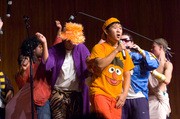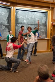 Audience members place Brian T. Basham ’12 (left, kneeling) and Ryan H. Foote ’11 (right) into impromptu poses during Roadkill Buffet’s “The She Sells Sea Shells by the Sea Show” last Saturday.