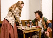 Nym (Susan C. Flowers ’13, left) and Pistol (Jacob L. Austin-Breneman ’13) plot their revenge against Falstaff during a dress rehearsal of the MIT Shakespeare Ensemble’s rendition of The Merry Wives of Windsor. Performances will take place in La Sala de Puerto Rico Oct. 22–24 and Oct. 29–31 at 8 p.m.