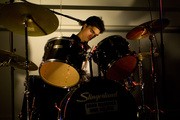 Kevin A. Rustagi ’11 of the The Guitar Knives drums a beat.