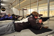 Timothy R. Jenks ’13 shoots prone in the 3 position smallbore rifle match against John Jay College of Criminal Justice. The Engineers defeated the Bloodhounds 4453 to 4199.