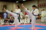 Lorraine Ling G (left) executes at the MIT Tae Kwon Do tournament held this past Sunday at the Z-Center. The Engineers finished first overall.