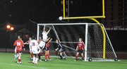 Andrea Y. Park ’13 jumps in an attempt to assure a goal scored by Alisha D. Lussiez ’12 during the Engineers’ soccer game versus Clark University. The goal secured the win for MIT, which won 2-0.