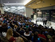A crowded 10-250 watches as the Harvard Din & Tonics perform at the MIT/Welllesley Toons Concert for a Cure, which took place Saturday night in 10-250. It was the 4th annual Multiple Sclerosis benefit concert hosted by the Toons, and they raised over $1,700 for the Accelerated Cure Project, which conducts research aimed at understanding and curing the disease.