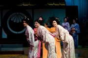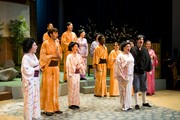The townspeople of Titipu gather to celebrate the love of Yum-Yum (Julie Lauren Stevens) and Nanki-Poo (Barratt Park G) at the end of Act I of The Mikado presented by The MIT Gilbert & Sullivan Players. The play will be performed this weekend in La Sala de Puerto Rico.