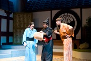 (left to right) Pooh-Bah (Dan Salomon), Koko (David S. Rolnick 12), and Pish-Tush (Jonathan Nussman) receive an alarming message from the Mikado (Johari Frasier ’13) during The MIT Gilbert & Sullivan Players’ rendition of The Mikado playing this weekend in La Sala de Puerto Rico.