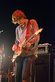 Guitarist and vocalist Thurston Moore shreds on one of his many Fender Jazzmasters. Throughout the show Moore switched guitars to cover all the alternate tunings required for the Sonic Youth repertoire.