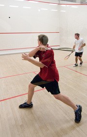 Austin C. Anderson ’12 returns a shot on Saturday at the Zesiger Center squash courts. The Engineers’ match against the Huskies was the last in a triple-header with Tufts University, Middlebury College, and Northeastern University.