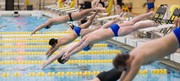 Swimmers leap into the water at the start of the men’s 200 meter breaststroke event during MIT’s home meet against Wheaton College on January 8, 2010 in the Zesiger Sports and Fitness Center. Nicholas A. Souza ’10 placed second in the event with a time of 2:26.80.