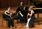 Violinist Sarita Uranovsky, clarinetist Molly Walker, and pianist Hiskao Hiratsuka play a musical piece dedicated to Noam Chomsky at a concert honoring the MIT Professor of Linguistics on Friday evening in Kresge Auditorium.