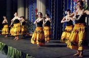 Dancers (front row, left to right) Danwen Chen ’09, Melissa Dullea ’00, Tiffany L. Yee ’10, and Hannah J. Hsieh ’09 are seen performing at the MIT Hawaii Luau event in Walker Memorial on April 4.
