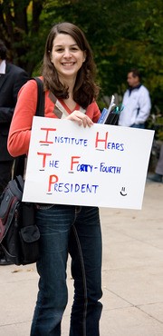 Reena L. Joubert ‘13 awaits the arrival of President Obama in front of 77 Mass. Ave. on Oct. 23. Hundreds lined Mass. Ave. hoping to catch a glimpse of the President, only for his motorcade to pass along Memorial Dr. The Presidential visit focused on advancing his national energy agenda.