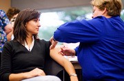 Ece Gulsen G receives an influenza vaccine at MIT Medical’s student-only flu clinic in the Student Center on Oct. 15. All 1000 doses reserved for the day were used. There was more preventative activity against the flu this past year due to the global H1N1 “swine flu” pandemic.