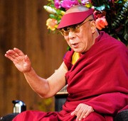 His Holiness the 14th Dalai Lama, Tenzin Gyatso, addresses a packed Kresge Auditorium on April 30 at the inaugural event of The Dalai Lama Center of Ethics and Transformative Values, a venture under MIT’s Office of Religious Life.
