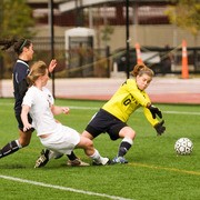 Jean E. “Liz” Theurer ’09 slides to the ground as she scores the first goal of the game for the Engineers during the women’s soccer game against Smith College on Oct. 17 at Steinbrenner Stadium. The Engineers won 6-0 under overcast skies.