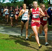 Melissa A. Showers ’13 pulls ahead of runners from Brown and Sacred Heart during the Women’s cross country race on Oct. 10. MIT went on to finish 4th out of 49 teams.