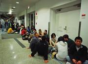 Students line up in front of 26-100 on Saturday night for the MIT Chorallaries’ nth Annual Concert in Bad Taste, an event where political correctness gets thrown out the window. The line was started last Wednesday evening, and ended up snaking around Building 16.