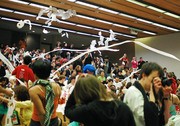 Per Bad Taste tradition, audience members pelt the stage and each other with paper during the nth Annual Concert in Bad Taste, put on by the Chorallaries of MIT on Saturday night.
