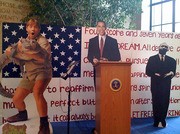 The “On the Shoulders of Giants” display was vandalized during the week of Feb. 2; a cardboard cutout of President Abraham Lincoln (pictured here) was replaced with a cutout of “Crocodile Hunter” Steve Irwin.
